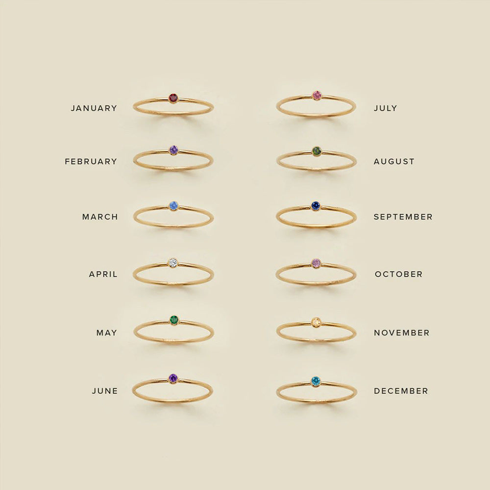 Fira livets speciella ögonblick med vår eleganta födelsestensring i guldfärgad rostfri stål. Varje ring har en liten, glittrande sten som representerar en av årets tolv månader – perfekt för att symbolisera din födelsemånad, någon du älskar eller ett särskilt minne.