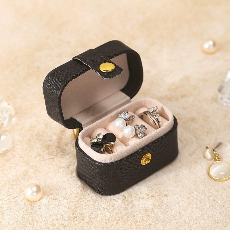 Tillverkad i ett slitstarkt material med mjuk insida som skyddar dina smycken från repor och trassel. Den kompakta storleken gör den idealisk att ta med på resan eller förvara i handväskan.