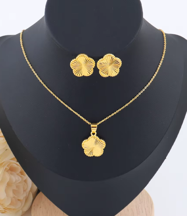 🌸 Smyckesset – Blomdesign i Guldplätering