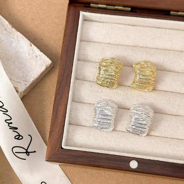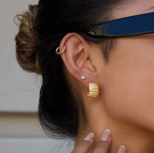 Lyft din stil med dessa eleganta, strukturerade creoler tillverkade i vattentåligt rostfritt stål och pläterade med äkta 14K guld.
